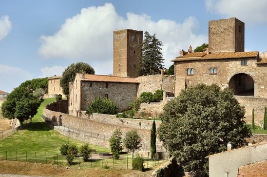 un impianto monumentale ben visibile dalla valle dove scorre il fiume Marta, e